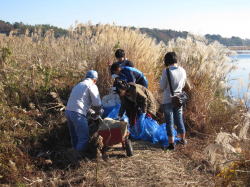 【実施日時】 2013年12月1日(日) 9時30分〜12時00分 【実施場所】 北柏/柏ふるさと公園〜大津川河口の手前 岸辺ならびに遊歩道等の周辺、手賀沼湖畔の芦原からゴミ拾い 【参加者名】 合計 51人 一般市民の参加: 内31人 参加団体) 北柏町会、竹中土木、柏市サイクル協会、 大津が丘中学校、ナルク 当会は内20人 青木、大室、尾曲、河井、木村、冠木、小林、酒井、芝原、志茂、 佐藤、新保、堤田、寺尾、中野、深津、藤井、藤波、船田、湯原 【世話役コメント:佐藤(善)、中野】 12月1日手賀統一クリーンデイお疲れ様でした。 ゴミ拾いにはもったいないくらいの快晴の中、各々の持ち場のゴミを拾っていただき有り難うございました。 例年通りに当会は柏地区の運営を担当しましたが、大津川河口周辺を大津川をきれいにする会に譲り、ふるさとl公園から、北千葉導水第2機場、大津川河口の手前までを、”柏・大堀川地区”として実施しました。全体的に人数が少なく皆さん大変だったように思いました。 年々大堀川、手賀沼もきれいになってきておりますが、まだまだ努力が必要です。来年も一層のご協力とご理解をお願いします。 |