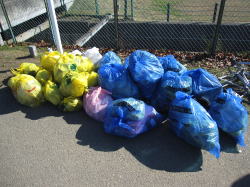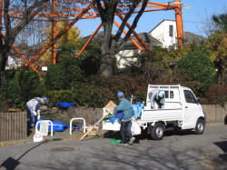 青袋: 30、黄袋: 20、ペット袋: 9 粗大ゴミ: 自転車、ヘルメット2、工具箱大、 電線の束、三角コーン、鉄骨 など等 |