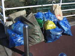 青袋8、黄袋2 ペット袋2、 ビン・カン袋4、 電線の束、釣り竿、他 |