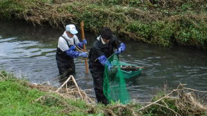 水辺の清掃 ・・・・ 胴長班 |