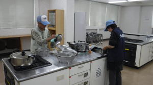 ![]() 10時過ぎ:近隣センタ調理室でソーセージ茹でる |
