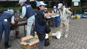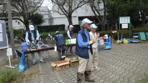 大掃除必需品のゴミ袋、軍手、火ばさみ、旗竿等々の在庫チェックを世話役さん音頭で行いました。