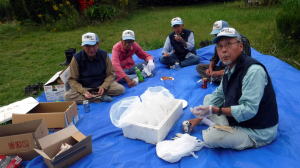 薄曇りでやや涼しいかと思いきや、後半は小雨から本降りに。夏の雑草繁茂はなかなか手強かったですが、少ない人数で何とかやりました。反省としては、道作りの日程決めが遅かったことも影響したか参加者がやや少なかった。当日、多くの方が参加されても草があってゴミを拾いに入れないということは極力避けたい。10月8日(火)、9:00〜11:20、曇り: 在庫調べ (文・写真:堤田)