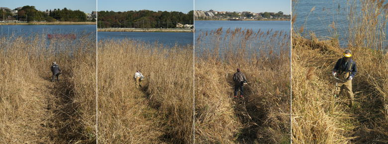 ![]() 1班: 河口に向かって側道にて |