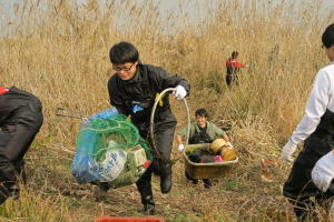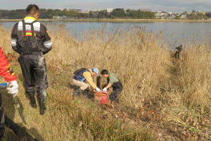 ![]() 2班: すくい網でゴミ拾い |