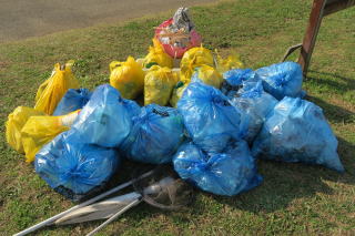 ![]() 青袋7、黄袋5、ビーチ傘2、プラかご1 |