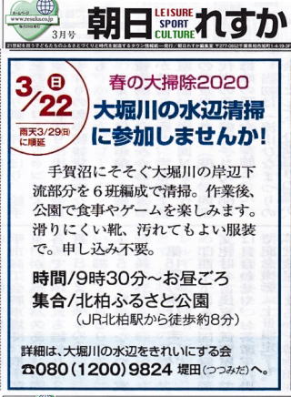 新型コロナウィルスの感染拡大に伴い、3月22日実施予定だった「春の大掃除2020」は、残念ながら中止としました。