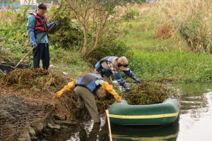 | 手賀沼流域河川で猛繁殖している特定外来植物(ナガエツルノゲイトウ、オオバナミズキンバイ)の駆除が行われたので、作業模様を紹介します。 (見学参加:堤田) |
