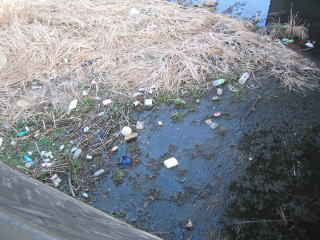 | 2007/2/17: 葦原が枯れ、発泡スチロールとペットボトル等の流れ着いたゴミが集まっています。 トップへ (マウスを置くと別の写真がでます。) |