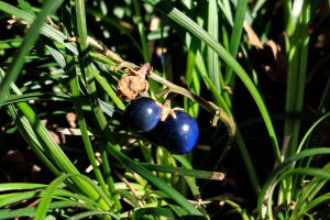 途中、河内さんの説明で知った「十両、別名ヤブコウジ」等々、勉強できました。また、青い実がきれいで増田さんが気に入ってたのはリュウノヒゲ(竜の髭)でした。