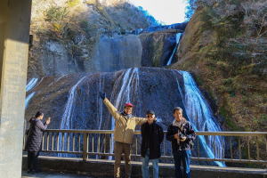 滝の前で、、 |