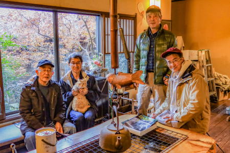 御城展望台から山道を北東方向へ約15分で、今回の温泉宿「梅屋山荘」に着きました。 私たち一行4名は、宿奥の1部屋「りんどう」に通されました。