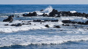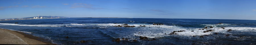 木内酒造から南東に向かい、ひたちなか市の海岸に辿り着くと、そこは地球が丸く見える太平洋でした。 で、しばしの休憩。