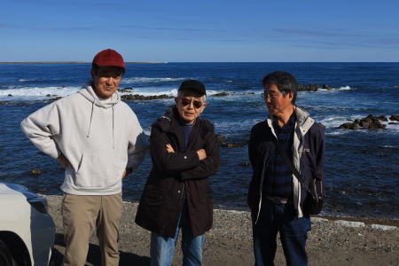 「太平洋は丸い」?などと、海を眺める皆さん |