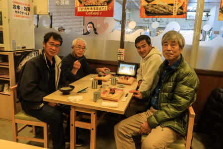 木村幹事のマイカーが暗い中を、5時半から6時過ぎにかけ増田、堤田、河内さんを順次ピックアップ。そして、柏インターから常磐高速道にのり、一路、北に向かいました。