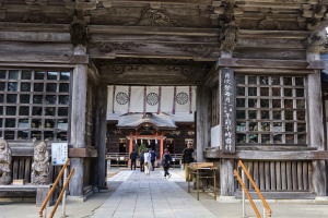「随神門」と向こうは「拝殿」 |