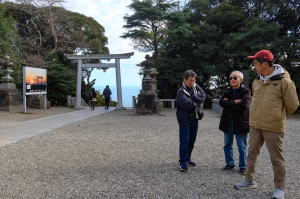 那珂湊から海門橋で那珂川を渡って大洗町に入ると、旅コーディネータの木村さんの最終ポイントの「大洗磯前神社」でした。 『磯前』と書いて『いそさき』と読みます。
