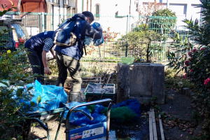 ![]() 9:35頃 作業前の段取り説明(世話役:沖田さん+佐伯さん) |