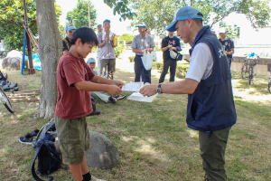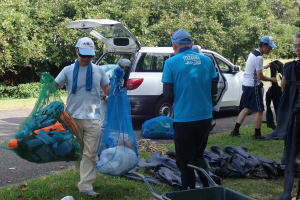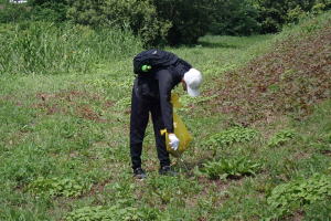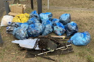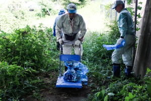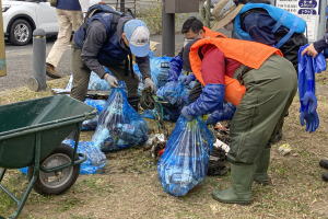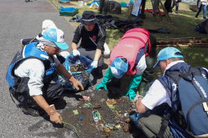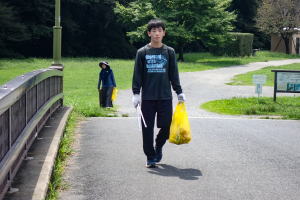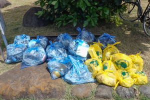 A: 昨年度は、参加者数403人で回収したゴミは青い大袋230個なので、1人あたり0.6袋になります。