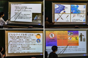 良かった点(驚いた点)としては、殆どの発表がパソコンだった事です。発表に使う素材を組み合わせて使うツールはパソコンに入っていたそうですが、時代を感じました。 一方、手書きのポスターやクイズ全問回答者へ渡す手作りのしおりやバッジ?はやはり気持ちがこもっていて良かったです。 また、発表で間違えたりつっかえた友達がいた時、さりげなく横から教えてあげたりする姿は微笑ましかったです。
