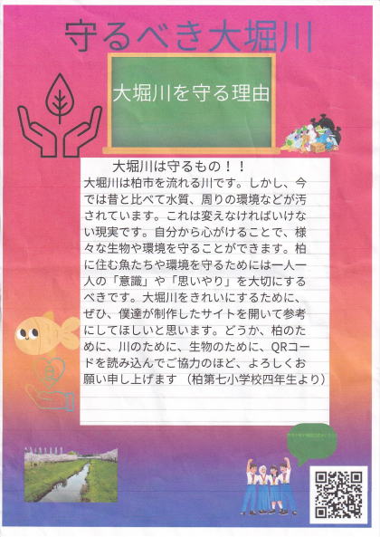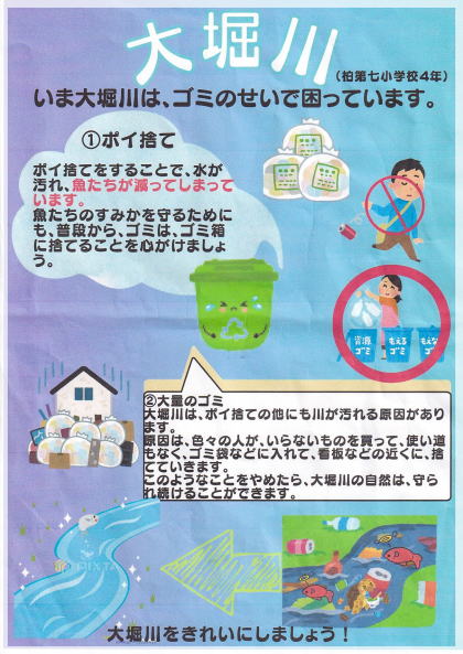 発表の内容やプレゼンの仕方などは色々工夫の余地はあると思いますが、4年生の児童が地元の大堀川や自然、ゴミ問題に関心を持つ機会を作れたのは素晴らしいと思います。 今の子供は毎日忙しく放課後に外で遊ぶ姿を見る事も少ないですが、少しでも大堀川を含めた自然と触れ合う機会を作って欲しいと感じました。